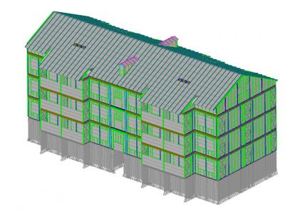 Specialists of STC "APM" was assessed the strength and stability of the wooden 3-storey frame-panel residential building under the action of the basic load combinations. The construction site of the Astrakhan region.