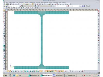 To calculate the lower flange proximate the bridge girder (I-section 35K2 SRT ACHSM 20-93) built solid model portion of the beam length 2m. This model was intended only for the analysis of the local stress-strain state occurs when moving the trolley along the bridge gantry crane.
